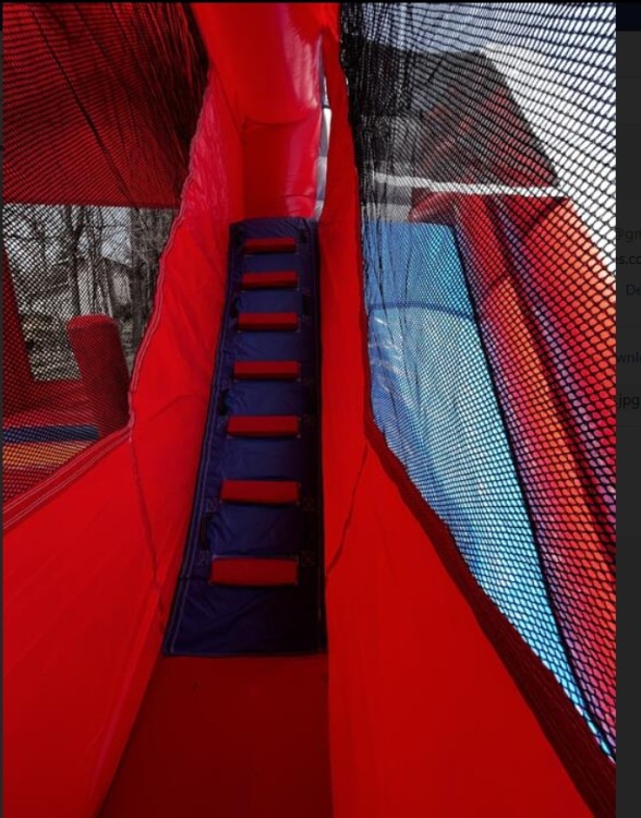 Features: Can be used wet/dry, XL bounce area, 8' slide, pop-up obstacles, and basketball hoop.